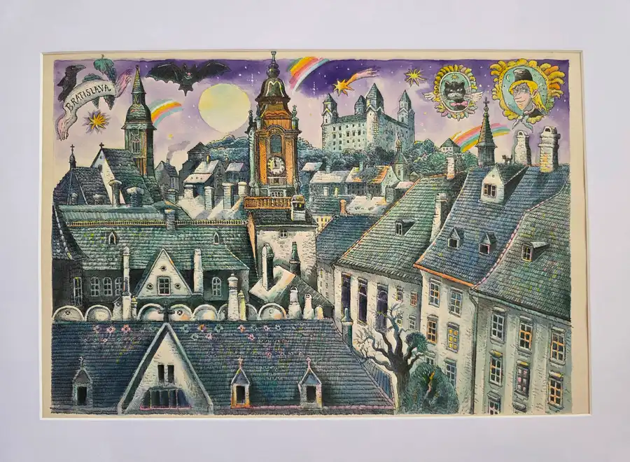originál kolorovaná perokresba ( obojstranná predsádka ku knihe)